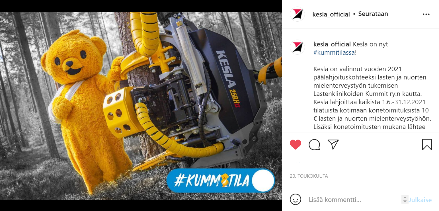 Kummitila tuo hyväntekemisestä viestimisen aivan uudelle ulottuvuudelle. Kummitilassa yritykset voivat esimerkiksi yllättää omia asiakkaitaan tekemällä heistä lahjoittajia. Tämä vahvistaa yrityksen ja asiakkaiden suhdetta, ja yritykset pystyvät Kummitilan kautta kertomaan mielenkiintoisesti omasta vastuullisuudestaan.
